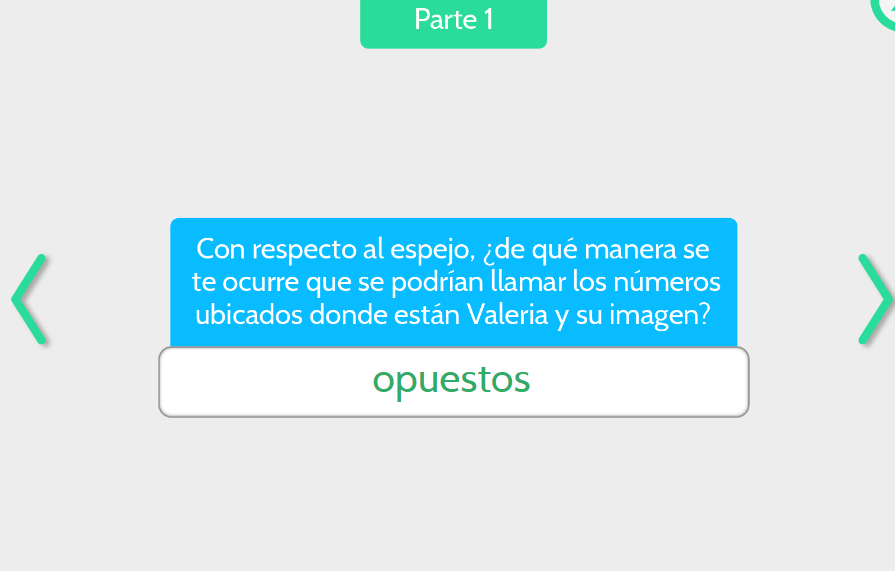 valeria una compañera de 7 que le encanta verse al espejo, llega a una tienda de ropa, al ponerce frente al espejo ,camina hasta el y se da cuenta que los pasos que da son exactamente iguales a los que la imagen da hasta el mismo lado del otro lado del espejo lo que hace concluir que ella y su imagen estan a igual distacia del espejo